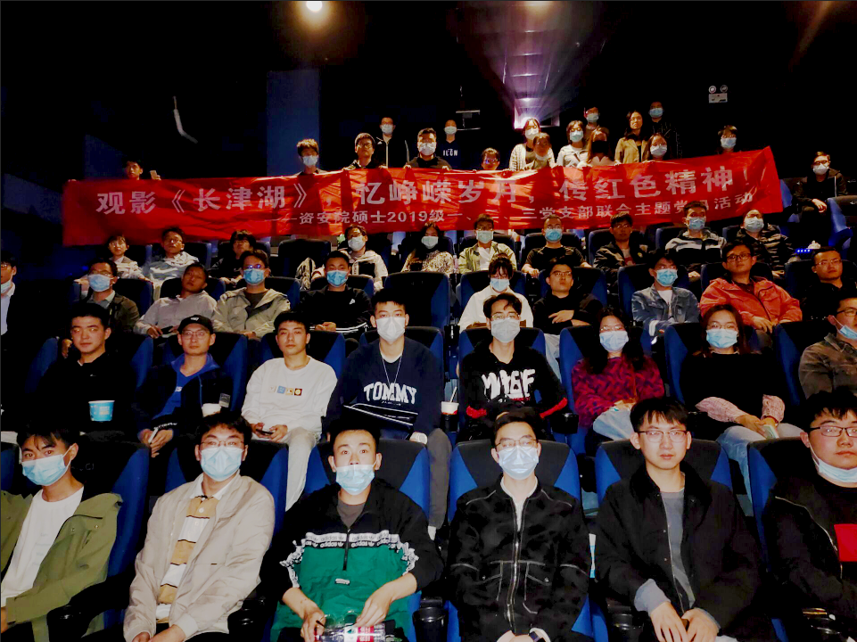 为庆祝新中国成立72周年,进一步深化党史学习教育,弘扬英雄精神,缅怀革命先烈。1013日晚,资安院硕士19级一、二、三支部开展联合主题党日活动,集体观看了抗美援朝历史题材影片《长津湖》。