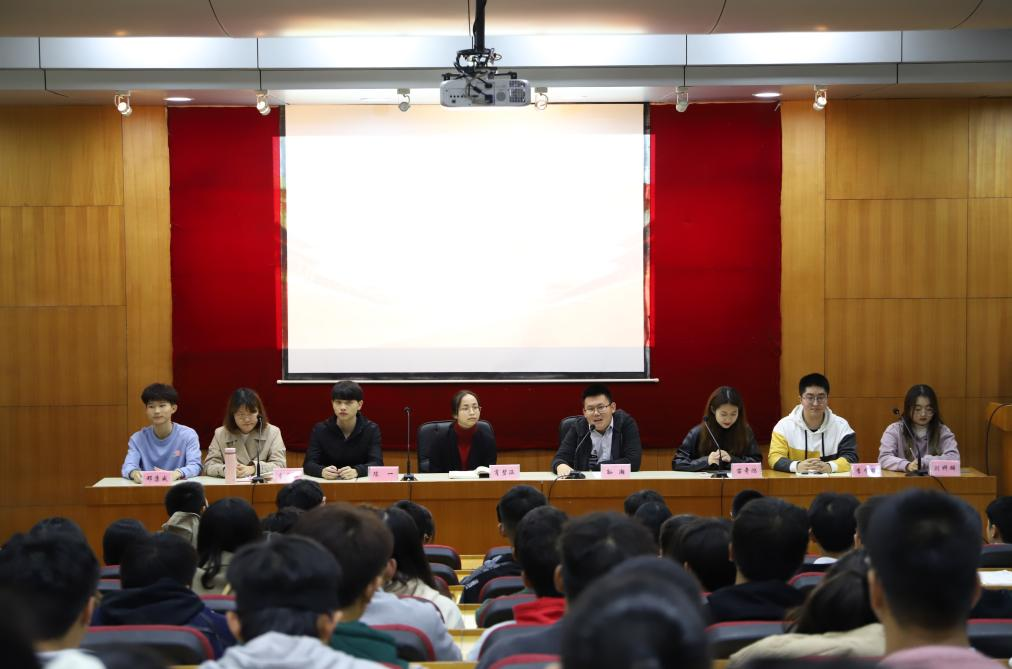 大会伊始,两位老师为本次大会致辞。孙瀚老师欢迎各位干事加入学生组织,希望大家能够延续佳绩,建设更好的学生组织,也能兼顾学习与工作。此外,他希望各位学生干部正视身份,在为大家服务的同时能够多多与大家交流、相互学习、一起进步。肖碧涵老师希望大家能够牢记初心,提升自我,多学本领,锤炼思想,树立服务意识,为学院学生工作贡献自己的力量。