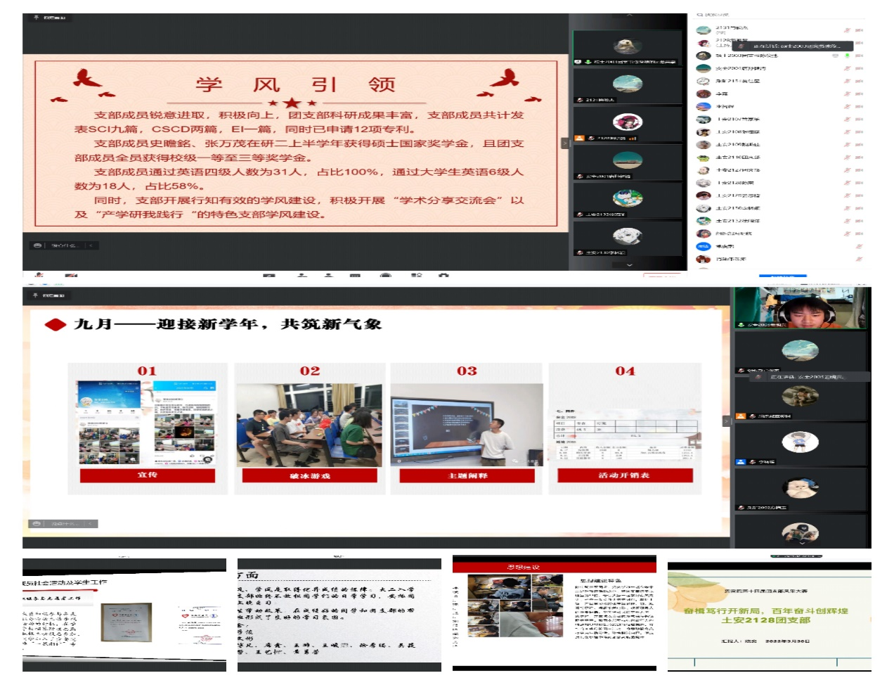 第十四届团支部风采大赛于线上召开。大赛分两个会场分别由组织部干事章笑恺、海明慧同学主持,院党委马国荣副书记和全体辅导员参与此次大赛。
