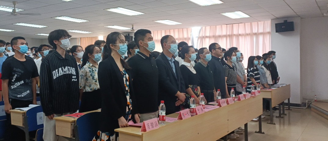 学生(研究生)代表参加本次会议。本次会议由李智辉同学主持,大会在庄严的国歌声中拉开帷幕。