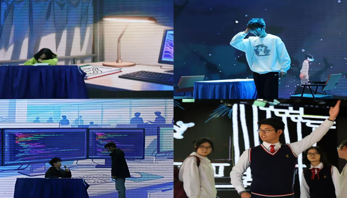 本次活动中,六支参赛队伍都各具特色。首先出场的是轨安2527班带来的《我不要智能上大学》,指出在AI浪潮下,我们也要有主动思考的能力;随后轨安2525班的《所以我放弃了音乐》聚焦于热爱与温情,让我们感受到了音乐给心灵带来的意义;轨安2529班的《六节楼梯》,引发我们在困难中如何选择的思考;轨安2528班带来的《逆转》则向观众诠释了我们可以不循常规,活出独一无二的精彩人生;紧接着轨安2524班带来的《心光轨道—桥》,告诉我们要勇敢奔赴心之所向,每一步行动都可能解锁不一样的人生答案;最后出场的轨安2530班的《人生矿石》,通过多种人生的演绎,告诉我们人生没有真正意义的完美选择。