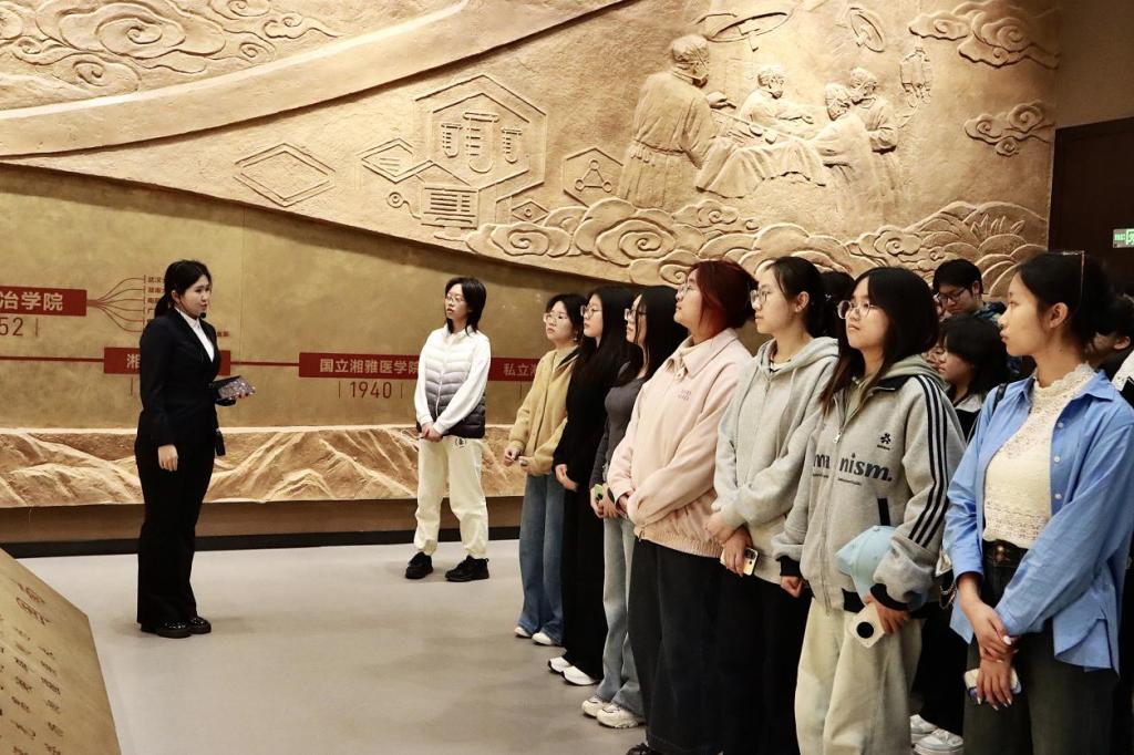 从建校至今的发展历程,深入了解学校在不同历史时期的办学成就与精神传承。讲解重点围绕学校发展历程中的杰出校友、革命先烈与学术先贤展开,从建校初期的筚路蓝缕,到一代代先贤为学校发展、国家建设奉献终生的事迹。同学们在沉浸式参观中,深刻感悟了中南人“知行合一、经世致用”的精神传承,读懂了信仰的力量与奉献的价值。