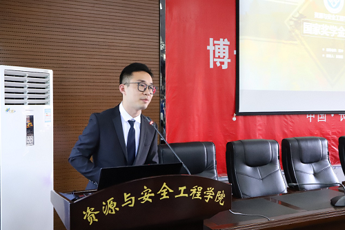 2019年研究生国奖答辩会暨优秀学子风采展示会于采矿楼T302举行。学院马国荣副书记、李孜军副院长、胡建华教授、唐礼忠教授、刘敦文教授、研究生辅导员于谦等老师和四名研究生代表担任评委。