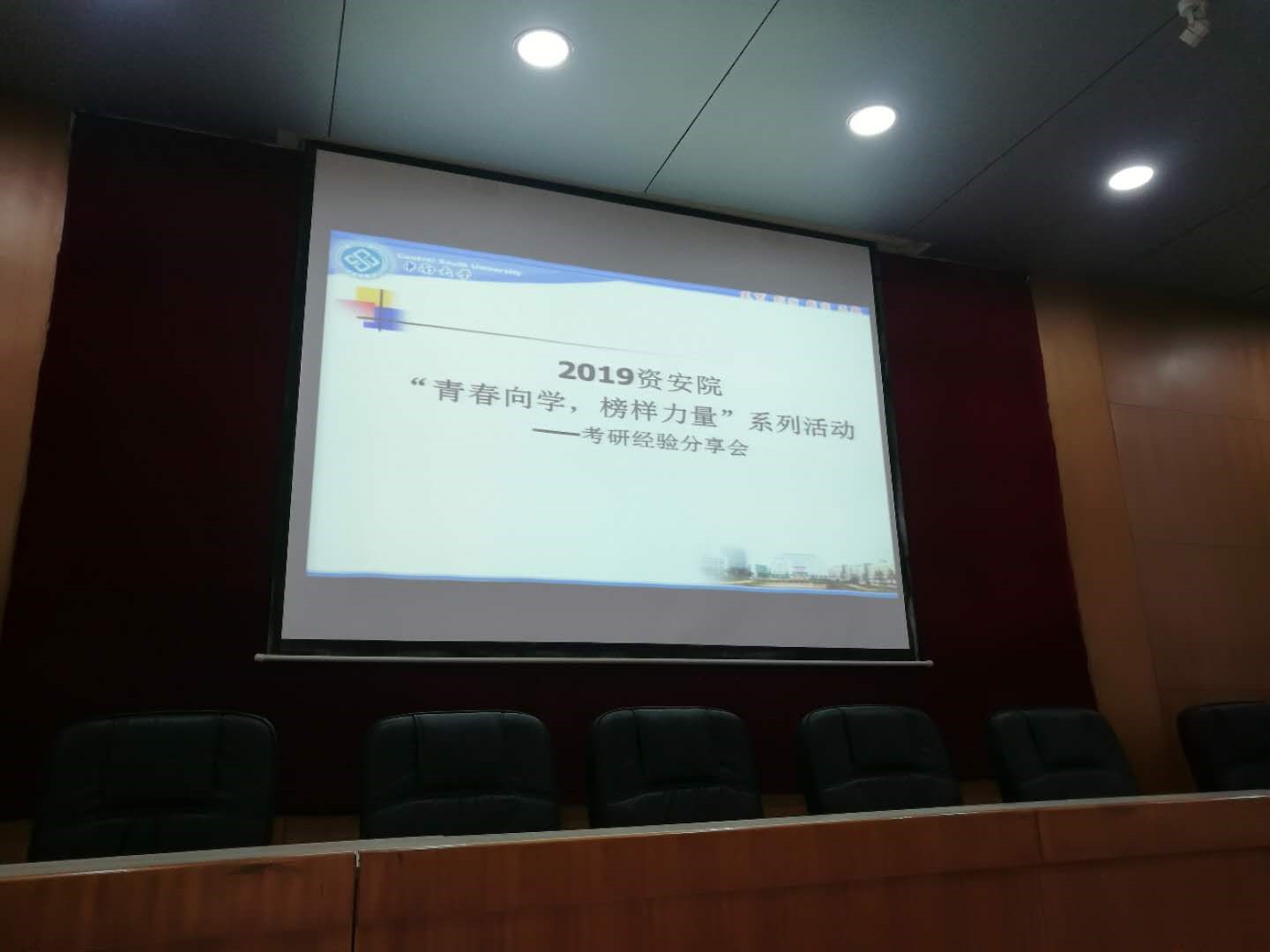 考研经验分享会于采矿楼301报告厅顺利举行。资安院16级辅导员侯霄峰老师出席分享会,各年级同学积极报名参加。