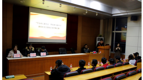 研究生党支部知识竞答赛笔试选拔采用闭卷形式,考试时间为60分钟,每个支部推选3名代表,学院各支部共有30名党员代表参加了此次笔试。最终,硕士18级3支部、硕士17级3支部和硕士18级2支部脱颖而出,得到了进入党支部知识竞答赛初赛的机会。11月14日晚竞答赛的初赛拉开序幕,主持人宣读比赛规则和流程。本次知识竞赛采用竞答赛,每队初始成绩为100分。每场竞答赛分为三个环节,分别为必答题环节、抢答题环节、风险题环节。工作人员对各个队伍的得分情况进行实时统计,比赛结束后统计各个队伍的最终成绩,取总分最高的一支队伍代表资安院参加学校组织的校级比赛。