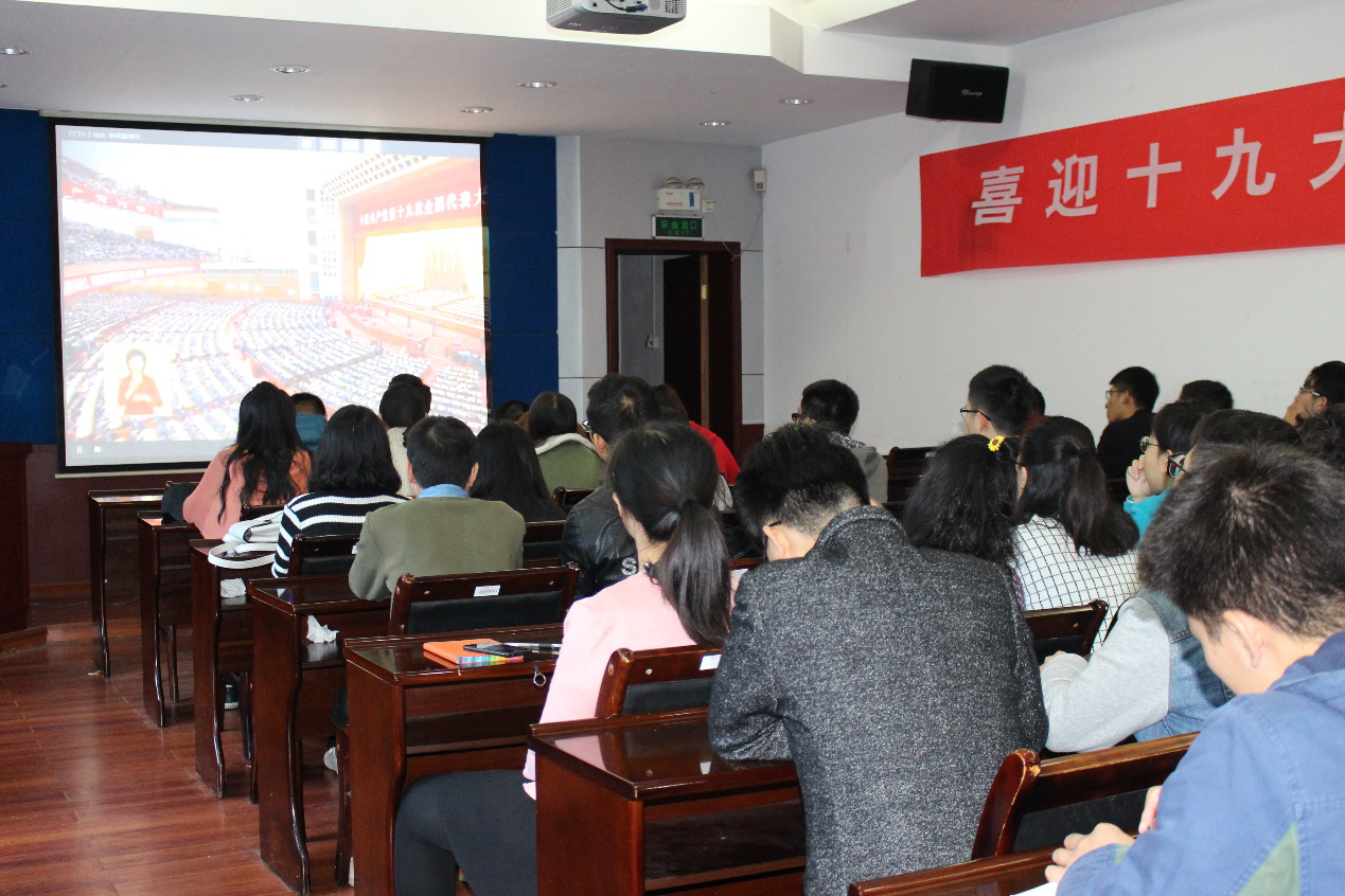 直播开始,全体师生跟随李克强总理的指示,起立齐唱国歌,并为逝去的优秀革命先烈默哀。随后,全体师生就坐,认真聆听习近平总书记的报告,观看期间,大家认真做好笔记,并不时为总书记的精彩讲话爆出热烈的掌声,整场活动都在积极奋进的气氛中进行。中国共产党第十九次全国代表大会是在全面建成小康社会决胜阶段、中国特色社会主义发展关键时期召开的一次十分重要的大会,会上,习近平总书记强调新时代的我们定要不忘初心,牢记使命,高举中国特色社会主义伟大旗帜,决胜全面建成小康社会,夺取新时代中国特色社会主义伟大胜利!此外,总书记还详细总结了过去五年来的工作和历史性变革,在座师生听后均深受启发。观看结束后,相关工作人员安排了采访环节,同学们积极主动,踊跃发言,纷纷表示在此次观看直播过程中收获颇丰,并由衷地为中国之强大而感到骄傲与自豪!