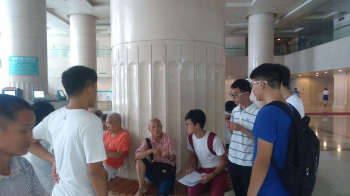 资安院“医疗卫生服务”社会实践团队走访了大大小小的各级行政单位十余个。在路口农民中展开广泛的问卷调查的同时,走访当地村委、卫生所展开访谈,走进长沙县第一人民医院等各大新农合定点医疗机构了解情况,并专访长沙县第一人民医院医保科科长等相关领导。抽丝剥茧,层层深入,全面了解长沙市新农合实施现状、群众满意度以及可持续发展情况,获得了大量的一手资料。“不会写字没关系,我们帮您填;看不清楚没关系,我们帮您念!”队员们态度认真、热情高涨,为了解新农现状,实现其可持续发展建言献策。