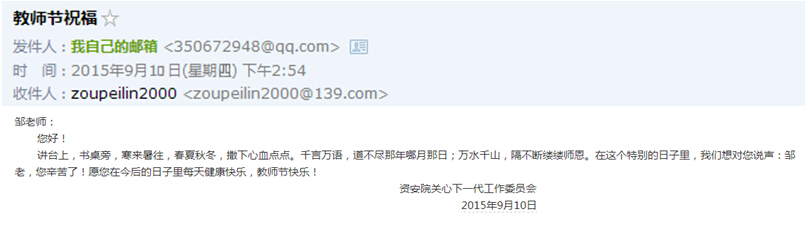 很多名同学一直保持着长期的联系,经常通过电子邮件、书信等多种方式为同学们答疑解难,帮助学生解决生活、学习、心理等各个方面的困惑。邹老师还主动要求每学期到草榴社区