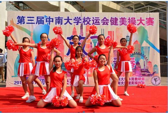 校运会健美操大赛在二食堂前坪举行。草榴社区