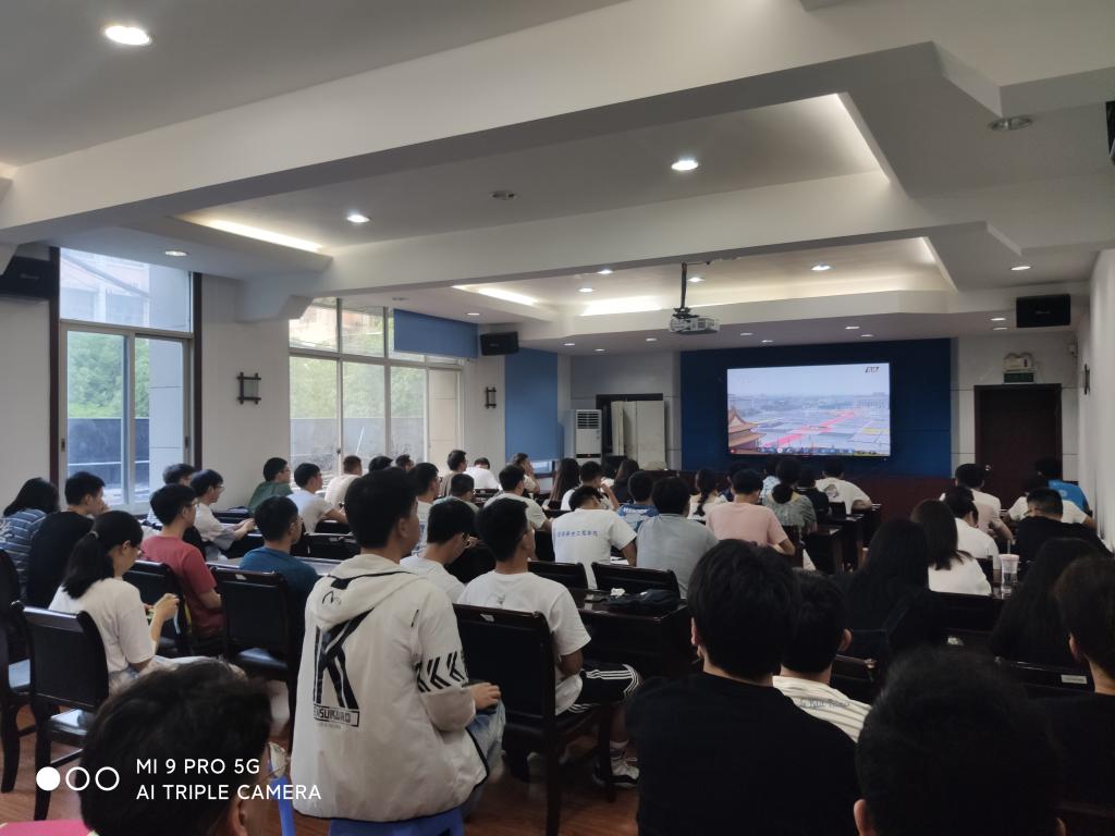 组织广大师生在多间会议室集中收看庆祝大会实况直播,共同感受和见证这一振奋人心的时刻。\