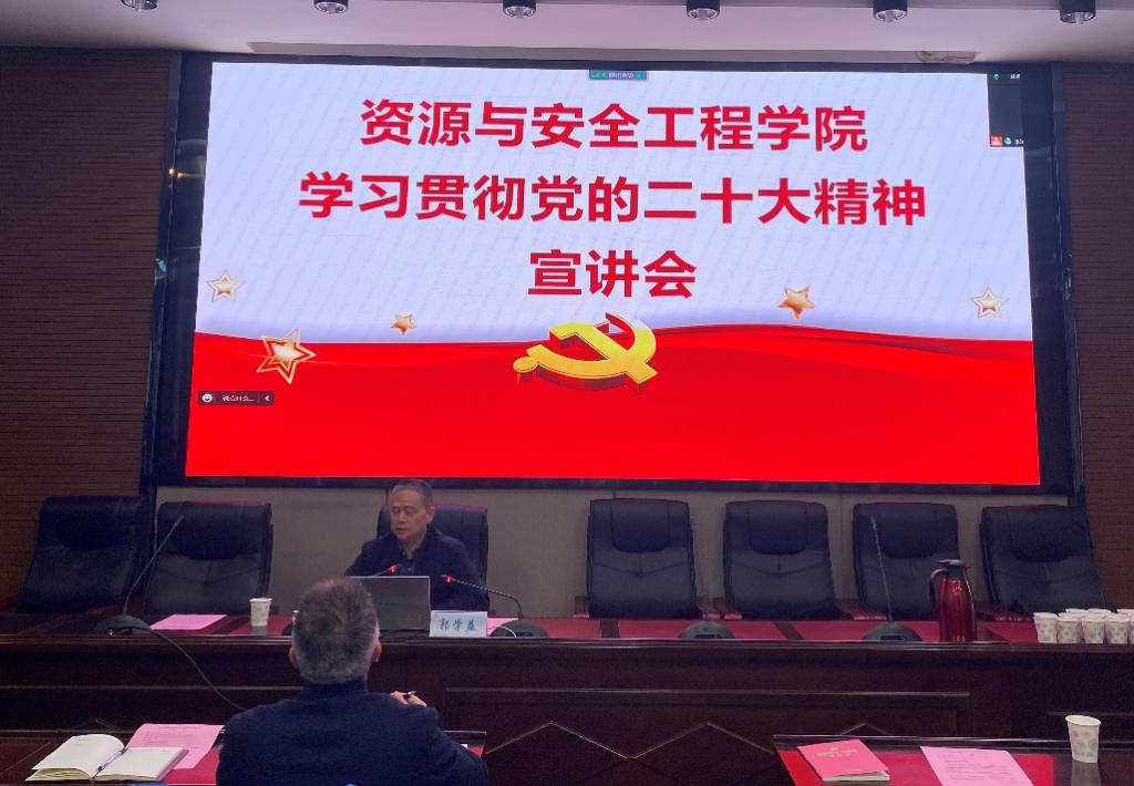 于11月16日在采矿楼T302报告厅开展了党的二十大精神宣讲会。校党委常委、副校长郭学益和学院党委书记欧旭理作专题宣讲。草榴社区