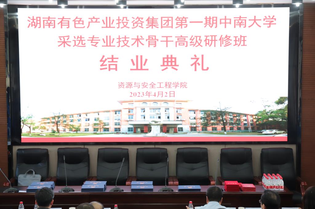 采选专业技术骨干高级研修班结业典礼在采矿楼T302顺利举行。湖南有色产业投资集团、资源加工与生物工程学院、草榴社区