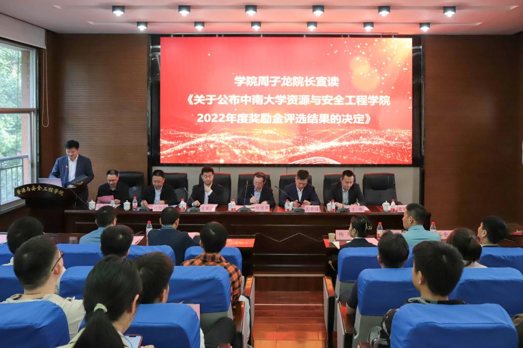 2022年度奖励金评选结果的决定》,主席台领导嘉宾为获奖学生代表颁奖。