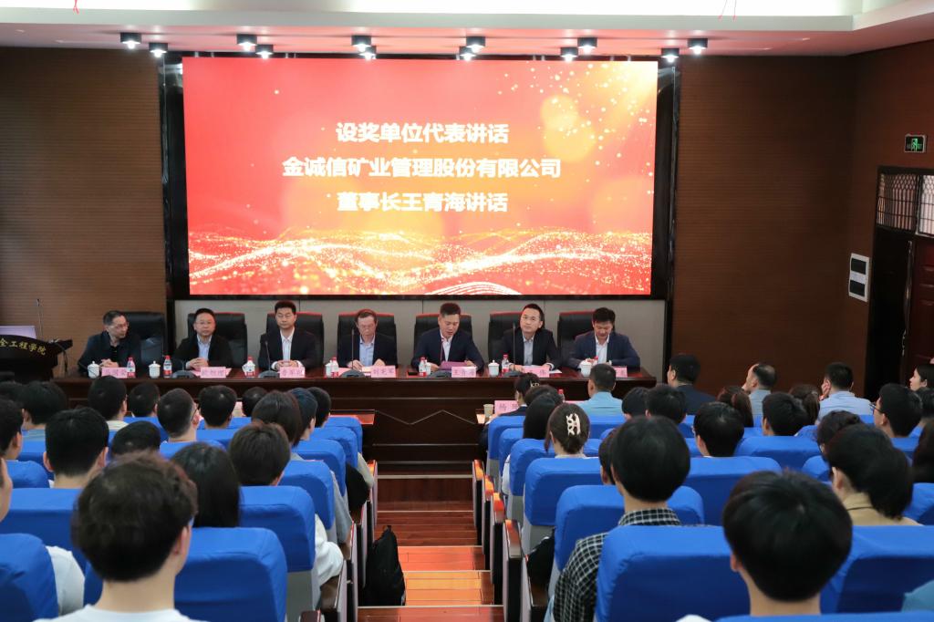设奖单位领导依次发表讲话:金诚信矿业管理股份有限公司董事长王青海在讲话中指出金诚信的发展理念是以产业报国、实业兴国为己任,金诚信对人才培养的高度重视,对学院学子寄予殷切期望;宏大爆破工程集团有限责任公司常务副总经理鲁军纪在讲话中对宏大爆破涉及领域、取得成果、企业理念作出了详细解释,同时也对草榴社区