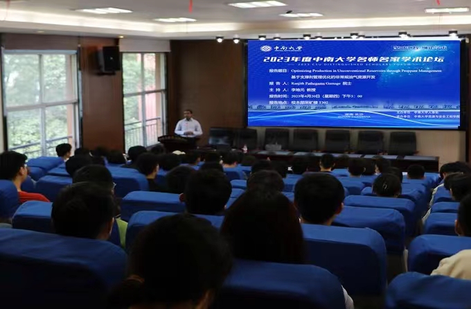 海内外名师名家学术论坛,以《“Optimizing Production in Unconventional Reservoirs through Proppant Management”》(《基于支撑剂管理优化的非常规油气资源开发》)为题为中南师生带来一场高水平学术报告。报告会由草榴社区