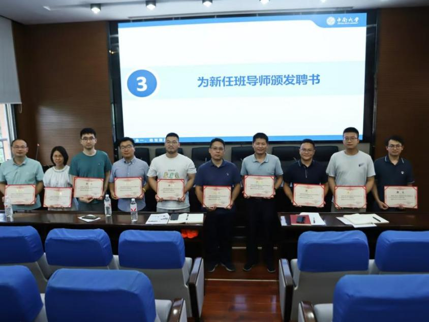 会议最后,秦进书记为2024级新任班导师颁发聘书,并鼓励班导师用心、用力、用情陪伴学生健康成长,认真践行一线规则,发挥全员育人合力。