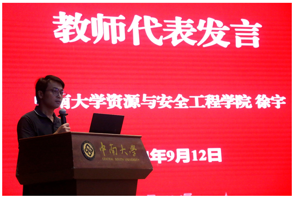 教师代表徐宇与同学们共勉,希望各位同学不辜负美好时光,在未来四年里能够保持对知识的渴望和对理想的执着,凭借自己的勤奋和智慧,把握每一天,创造属于自己的非凡之路。