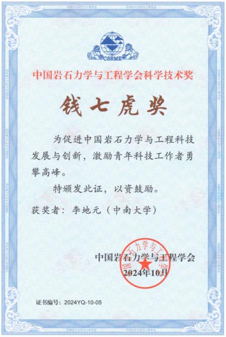 李地元老师从众多青年科技工作者代表中脱颖而出,荣获“钱七虎奖”。