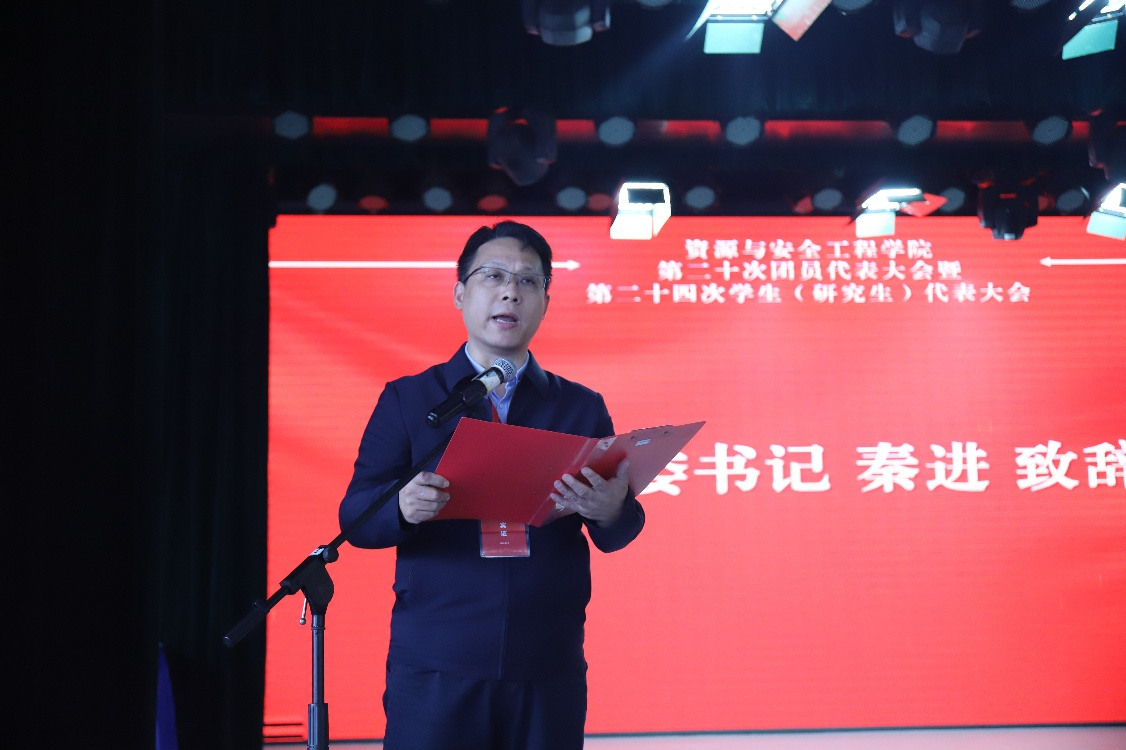 学院党委书记秦进在致辞中总结了学院近年来在学科建设、科研创新和人才培养方面的突出成果,并对同学们提出了坚定信念、专精学业、实践报国的期望。秦书记勉励资安学子以此次大会为新的起点,用“矿业天下”的实际行动践行“请党放心,强国有我”的铮铮誓言。