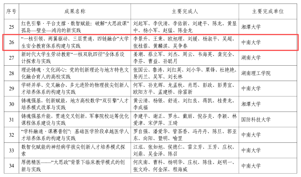 牵头,联合学生工作部(处)、公共管理学院、马克思主义学院等共同完成申报的《“一核引领、两翼驱动、三层贯通、四链融合”大学生安全教育体系构建与实践》教学成果脱颖而出,荣获省级特等奖,实现草榴社区